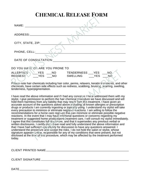 Download Salon Client Chemical Release Form PDF